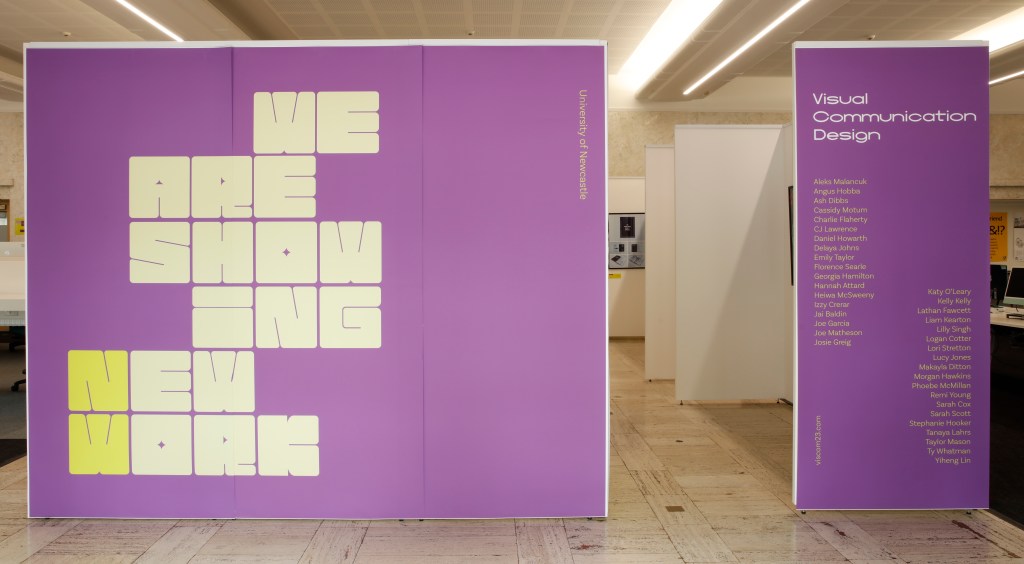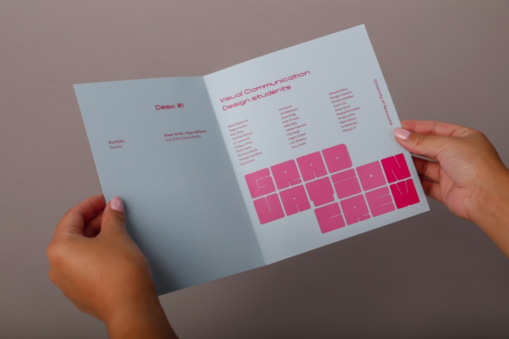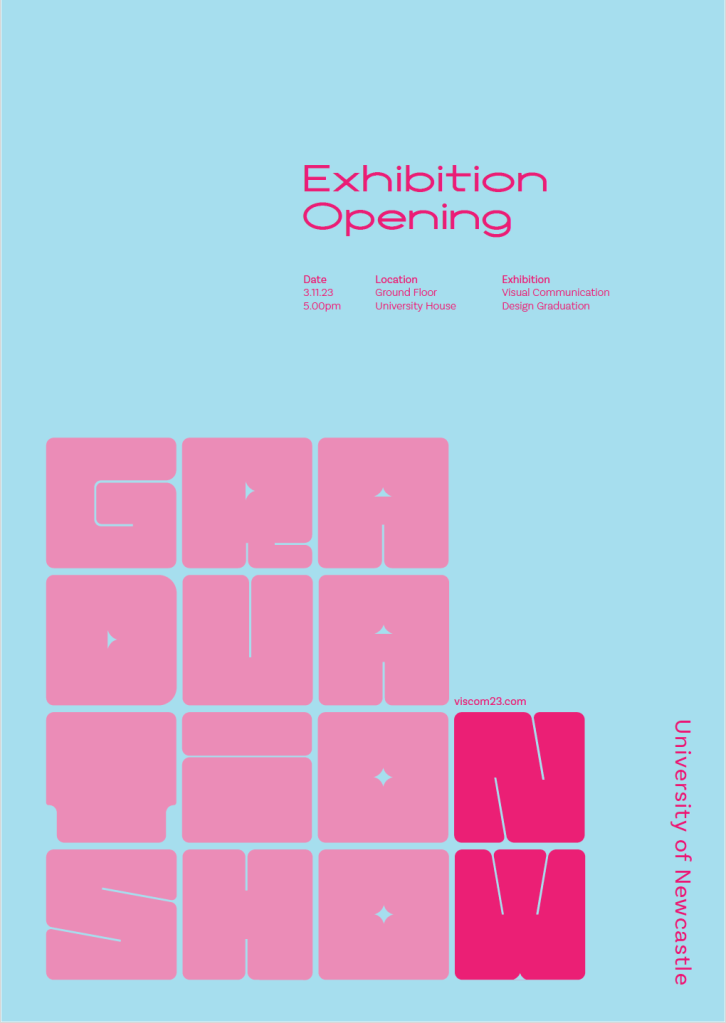 Grad Show ’23 is the University of Newcastle’s Visual Communication Design Graduation Show / Exhibition. This project had many aspects including a publication, website, social media, print media, and the final event.