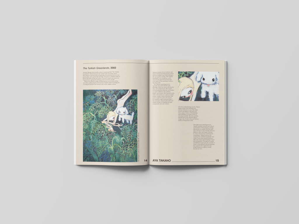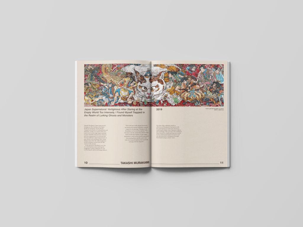 The design intention was to create spreads that emulate the immersive experience of walking through a sophisticated art gallery. Each page was meticulously curated to present the featured artworks as the primary focal point, with generous amounts of white space surrounding them.